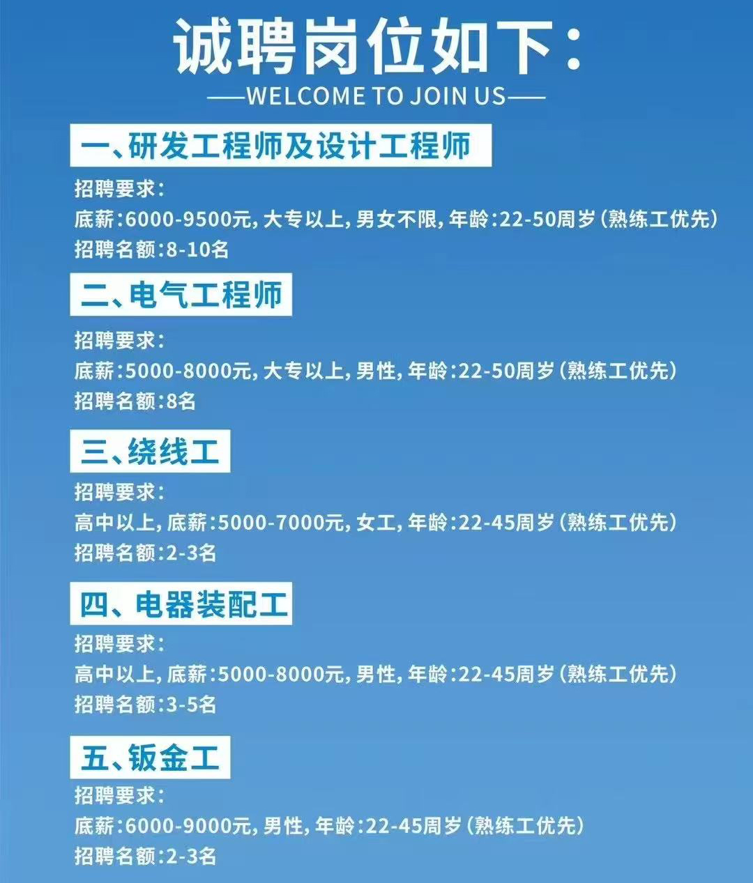鑫源尋找那些擁有聰明才智,并對(duì)工作充滿熱情,忠誠(chéng)于自身事業(yè),有使命感的有志人士。我們期待你們的加盟用你們的熱情共同照亮我們的未來(lái)。